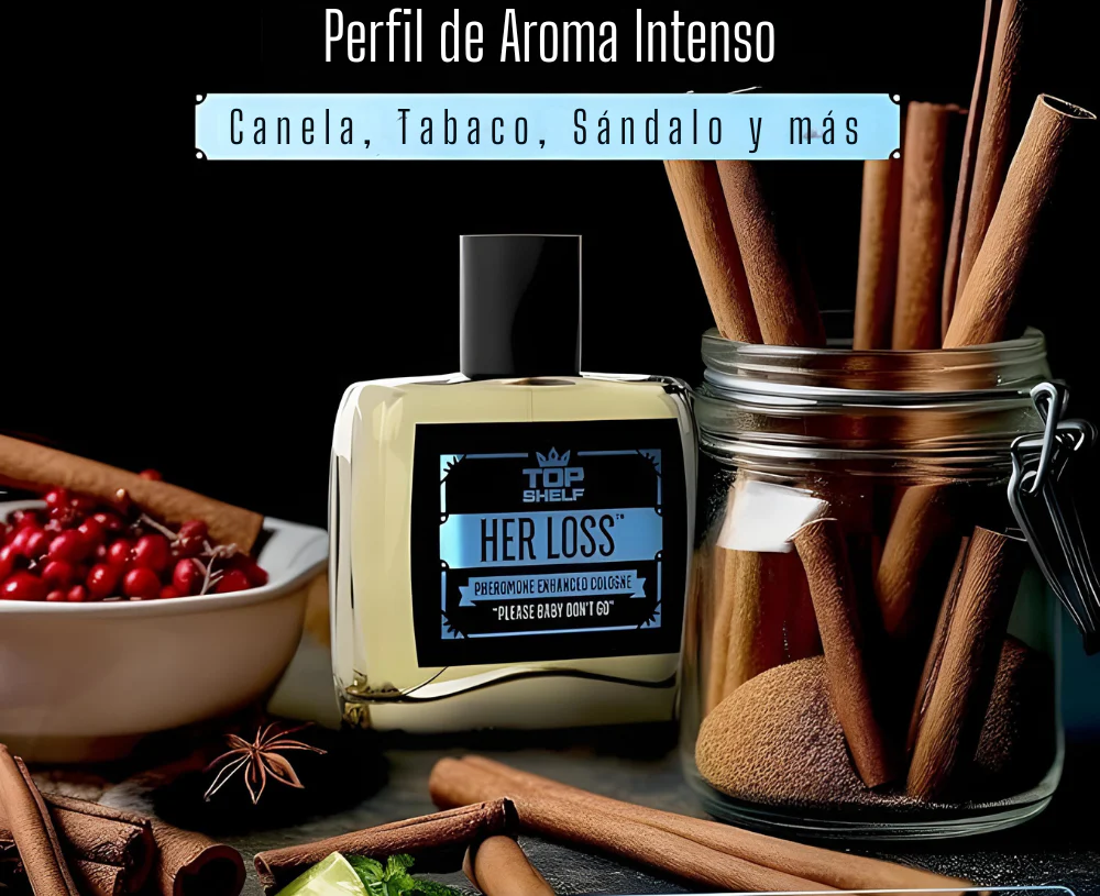 HER LOSS combina una fragancia premium con feromonas sintéticas que potencian tu atractivo natural y refuerzan tu seguridad. El resultado es simple: se nota.
